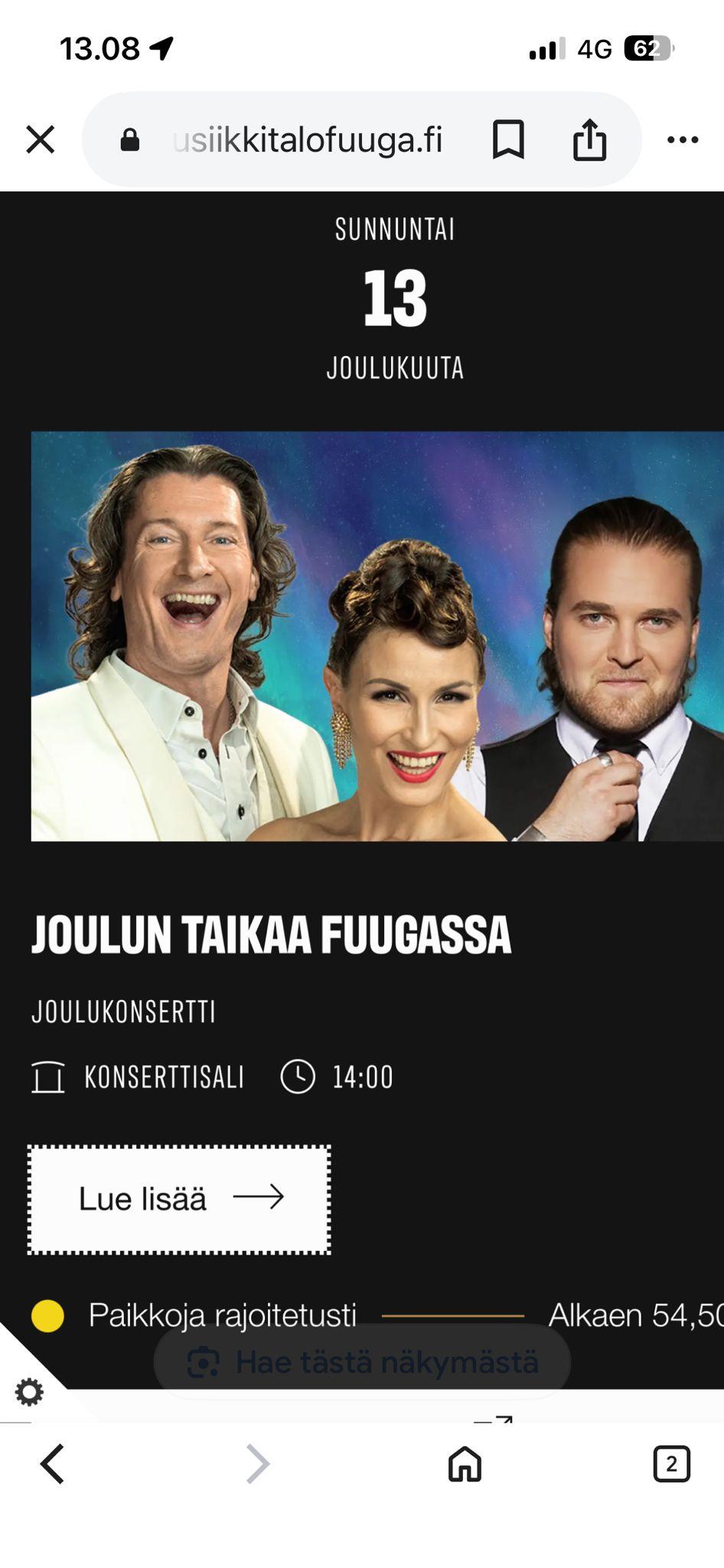 Varattu lippuja Fuugaan Voi ilmoittautua😀