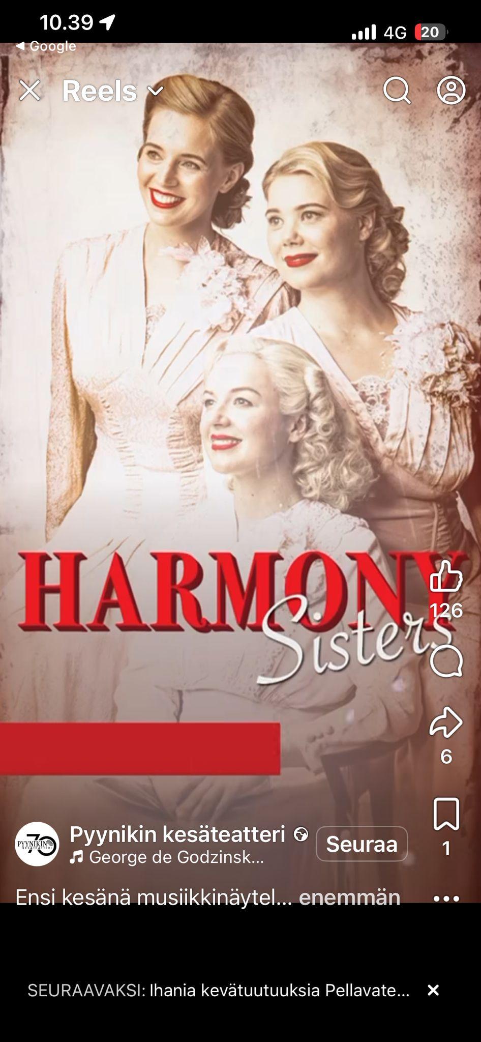 Lähtö klo 8:45 bussiasemalta, tilausajolaituri. Näytös klo 14.00. Lounas klo 11.30 Plevna ravintolassa. Retken hinta 93€ Sis bussimatkan, lounaan ja teatterilipun. Eräpäivä 4.6. Viite 20349